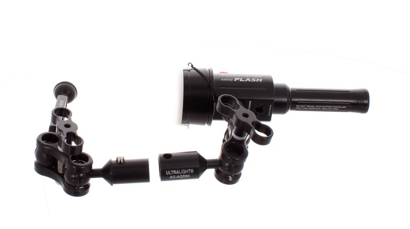 The Ultralight AC-AQD04 is a 4" quick disconnect arm designed for fast and easy attachment of underwater lights, strobes, snoots, and other equipment. Its compact design and push-button release make it perfect for streamlined underwater photo and video setups. It also serves as a versatile solution wherever a quick-disconnect is required.